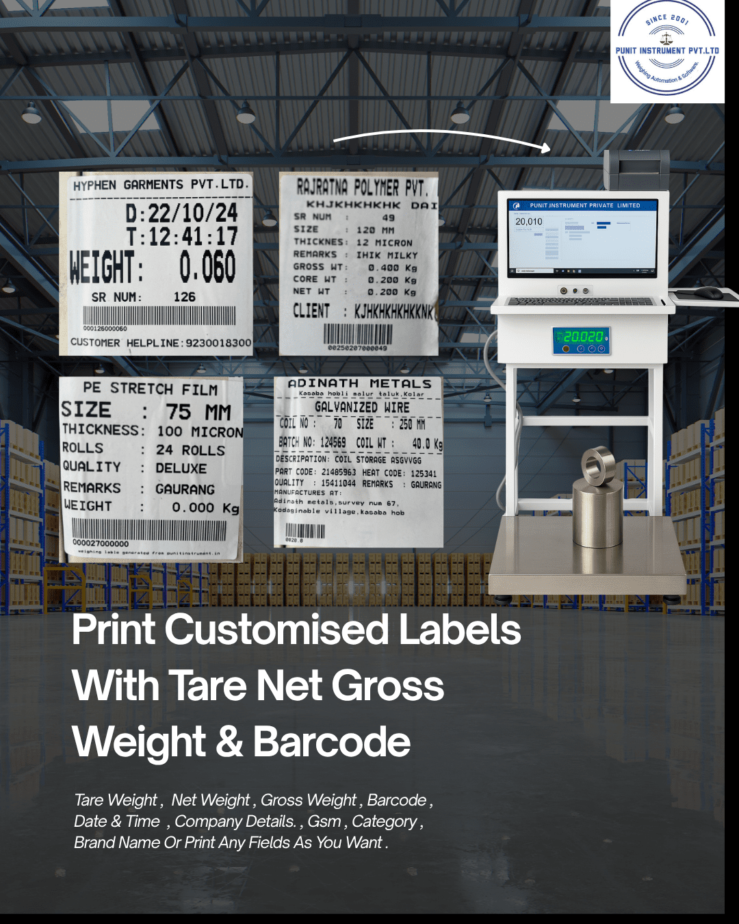 Answer – Yes. The label can contain weight, date, time, vehicle number, item name, QR code, and even your company logo.