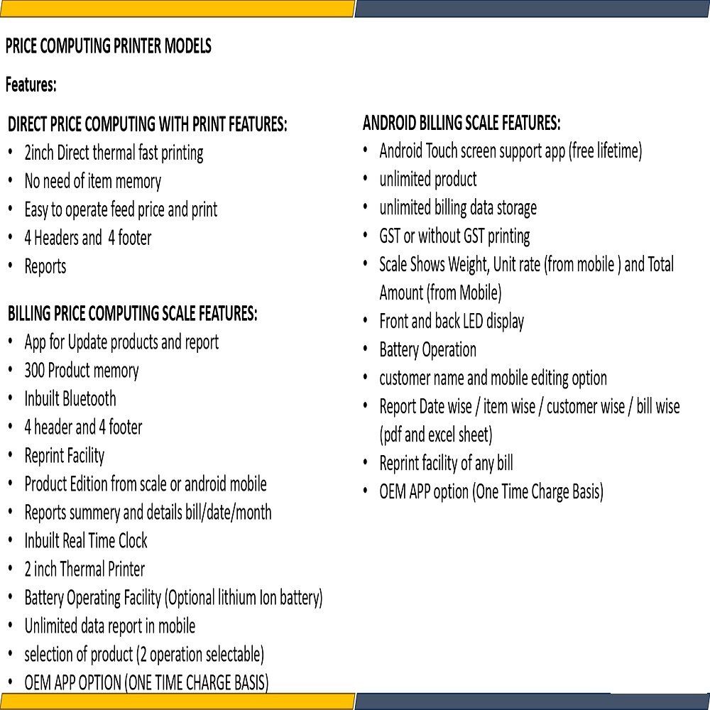 - customization possible #2 in 1 option available with label printer option (Barcode and Billing both together ) only In label printer model